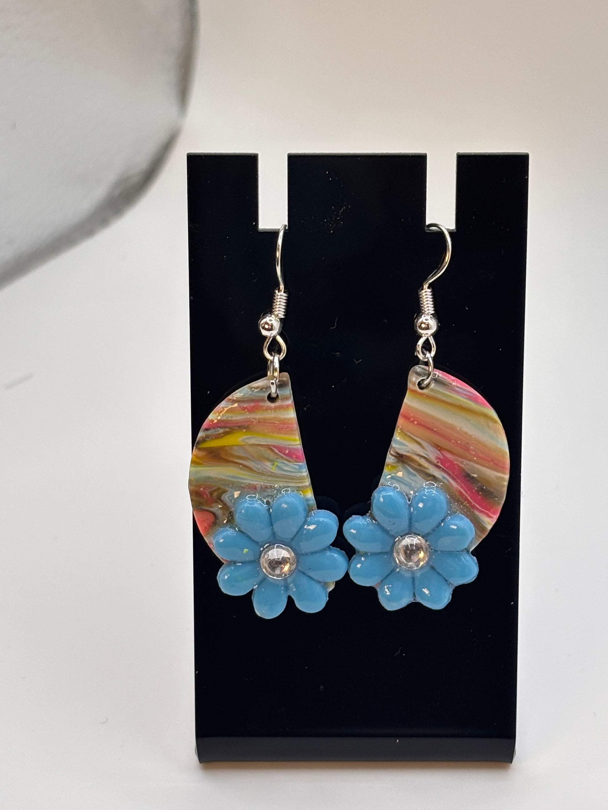 Blue Yellow and Pink Bloom Marble Drop Earrings