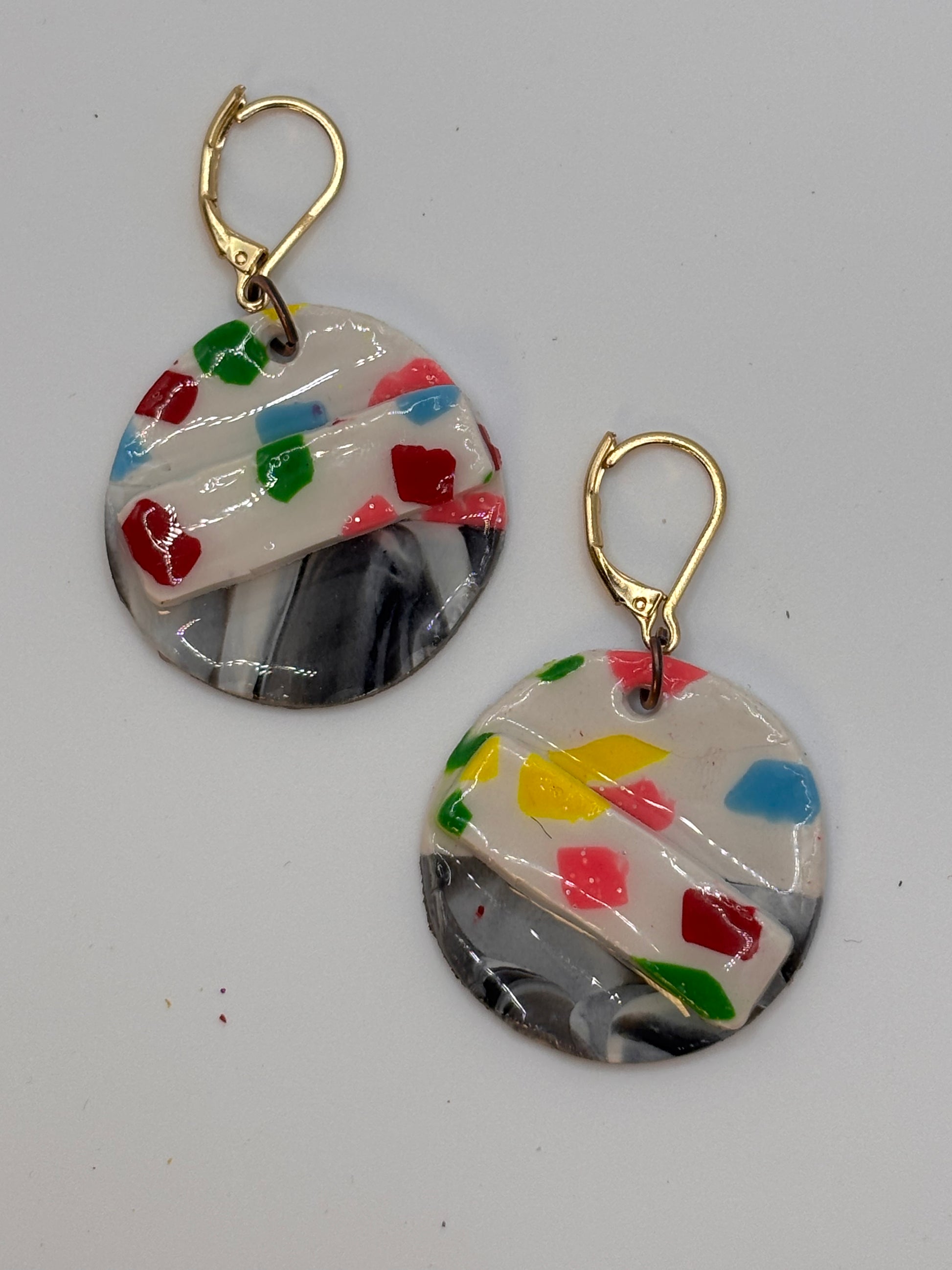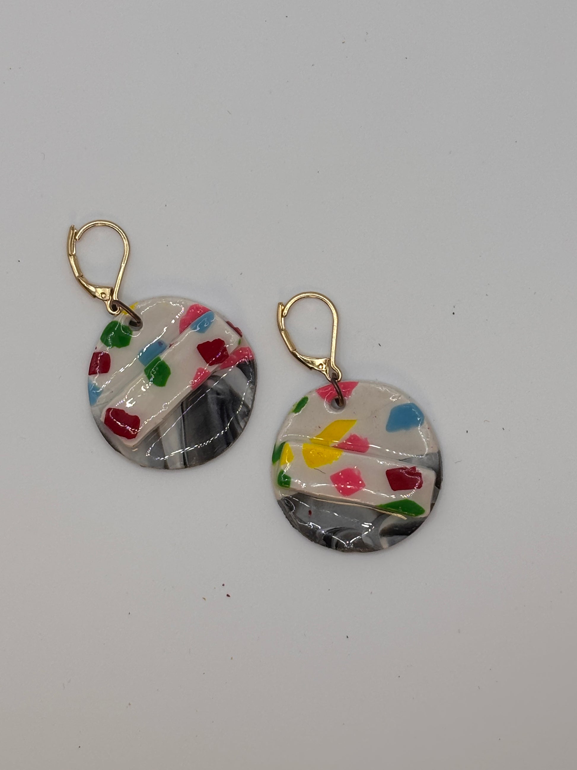 Round double design, rainbow confetti earrings. They can dress up or down the hooks are hypoallergenic and have closed ends to keep from losing you will love it!