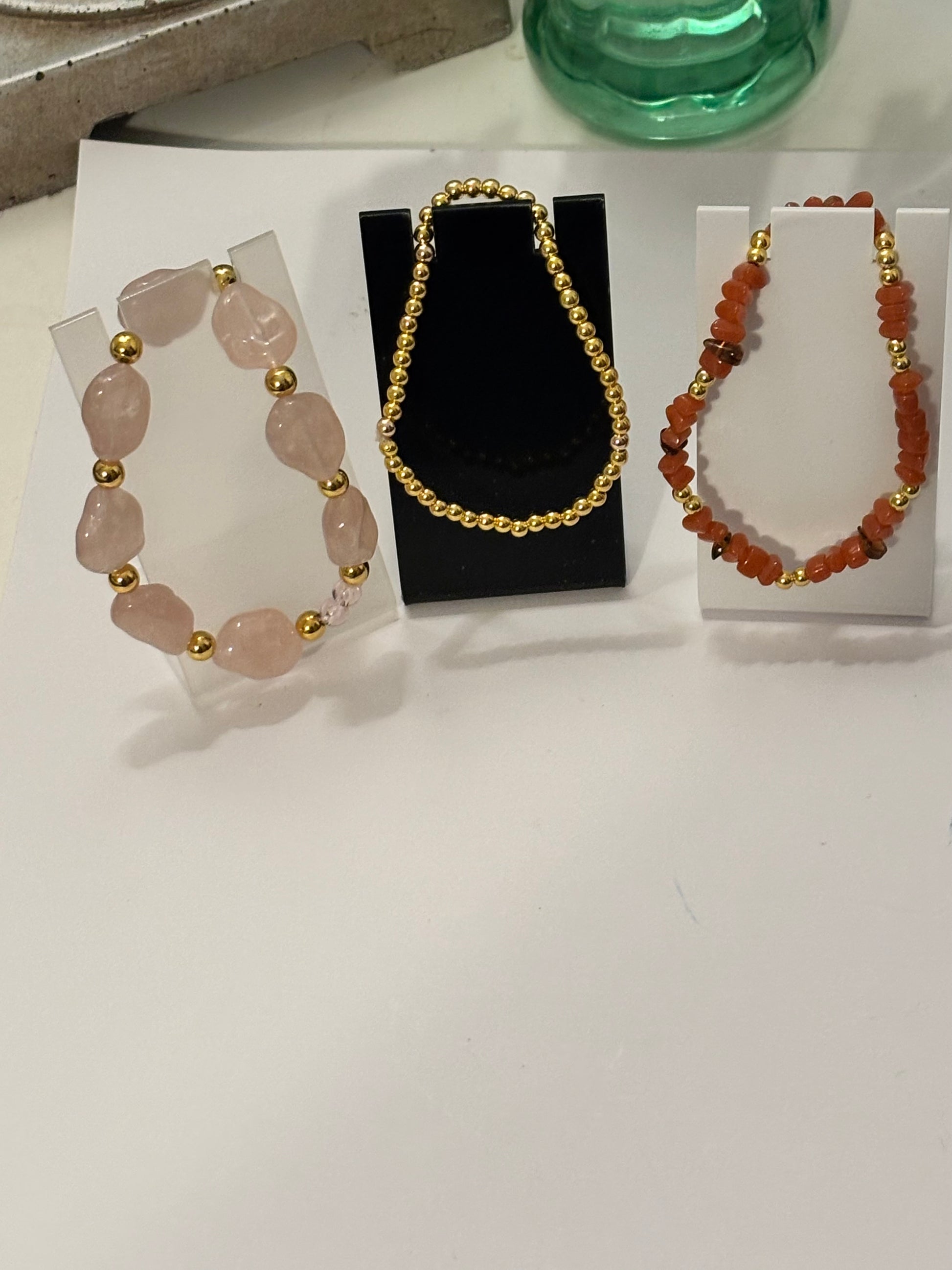 A true one-of-a-kind treasure, this captivating set features soft pink, warm gold, and rich rust-orange tones.